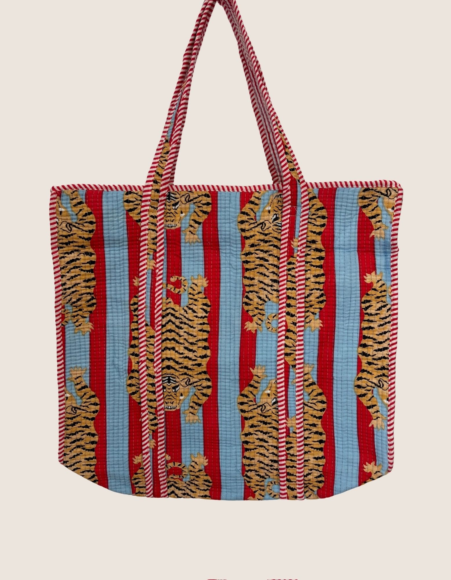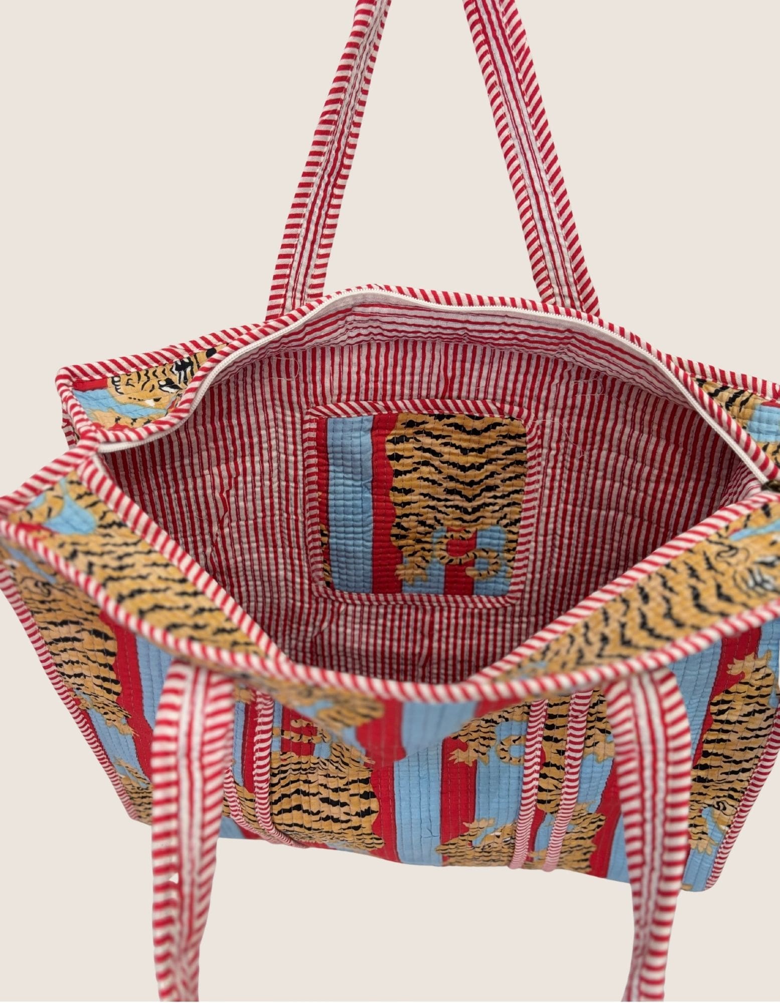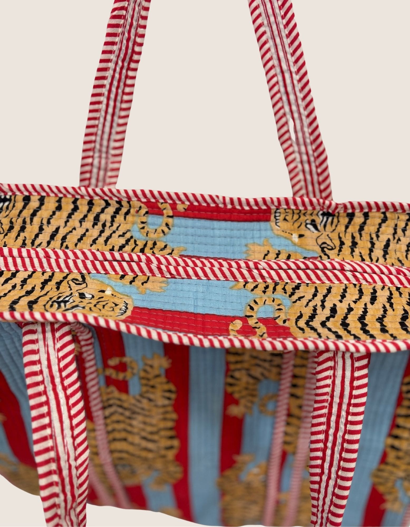 Descubre nuestros tote bag de 100% algodón , perfecto para cualquier ocasión. Con un estampado de tigres y rallas, con cremallera y asas reforzadas, combina estilo, funcionalidad y sostenibilidad. Su amplio espacio y bolsillo interior lo hacen ideal para el día a día.