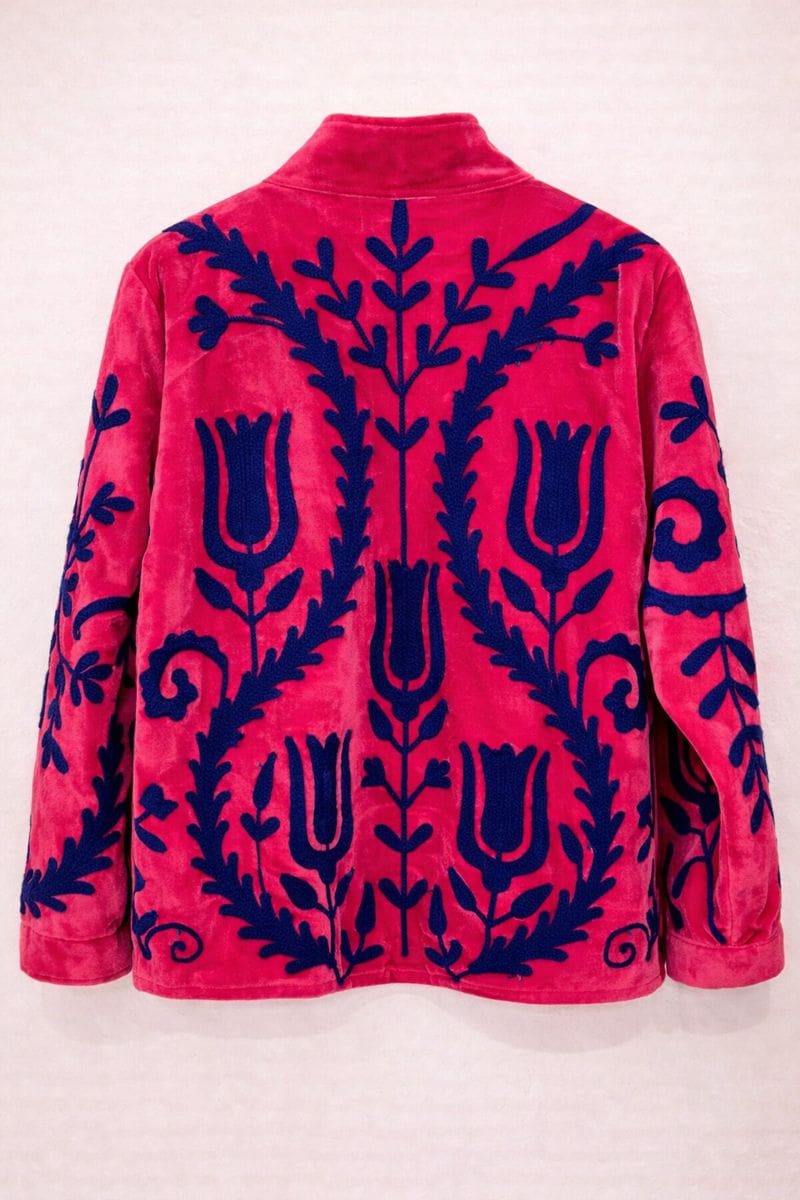 Esta chaqueta artesanal es una pieza especial creada en la India, donde cada bordado se realiza cuidadosamente a mano.